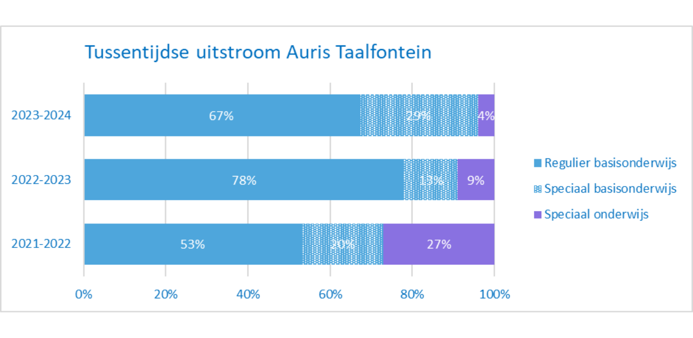 De ambitie van Auris is dat 75% van de leerlingen die tussentijds uitstromen, uitstroomt naar het regulier onderwijs (regulier en speciaal basisonderwijs).